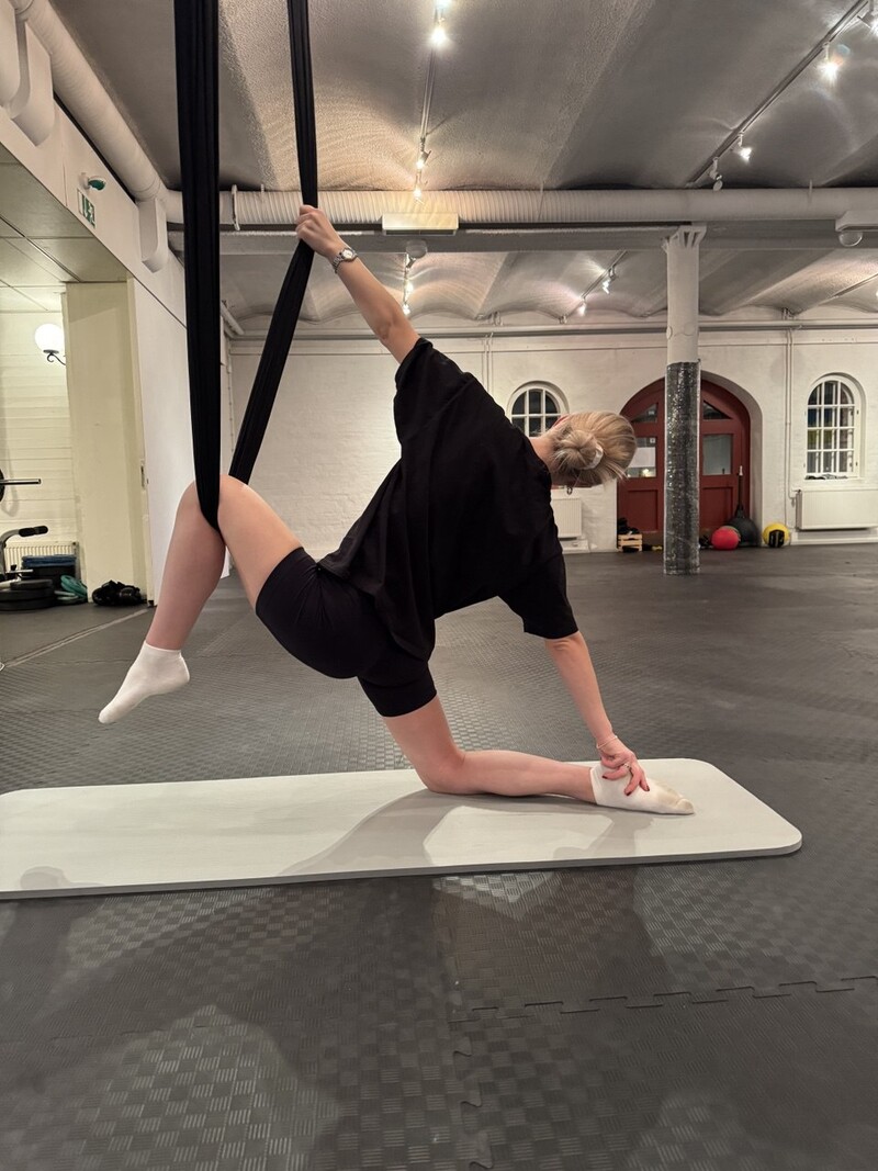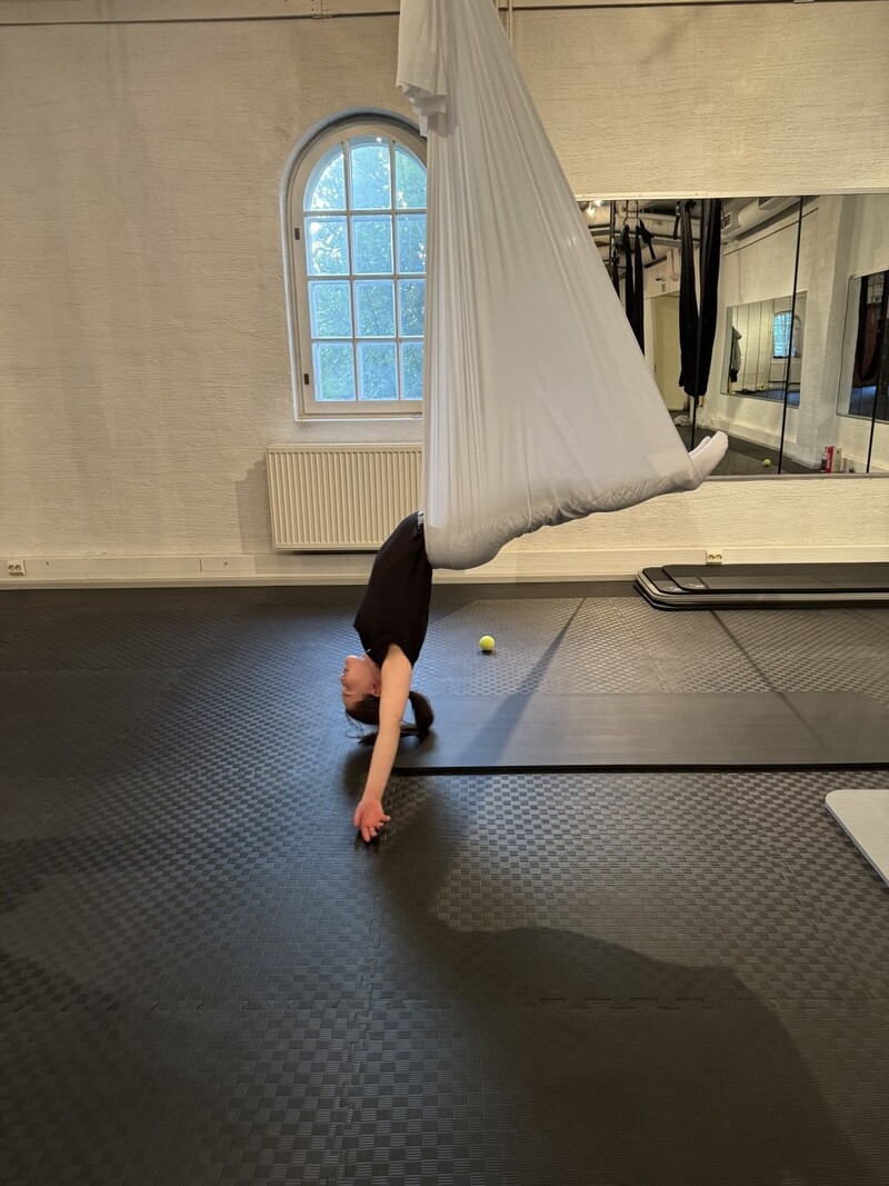 Aerostretching is a type of stretching in which exercises are performed on hanging canvases/hammocks. Thanks to hammocks, you can remove the load from the spine, removing the feeling of compression.